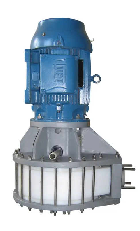 Alguns modelos de bombas centrífugas plásticas são projetados para serem utilizados com a carcaça submersa, e são perfeitamente resistentes a produtos corrosivos, já que sua estrutura é composta por materiais como o PRFV, o PTFE e outros termoplásticos.