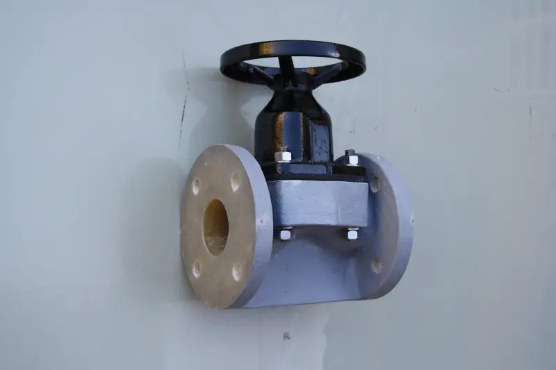 Válvulas diafragma acionamento manual São válvulas de diafragma resistentes à corrosão, que possuem uma passagem angular e acionamento manual por volante;